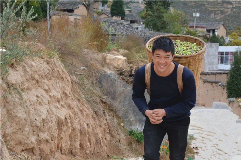 在崖角村,老百姓們把采摘好的果子背到收購現(xiàn)場(chǎng)按序交售,村民趙志曹說:“今年祥宇公司進(jìn)村收購,