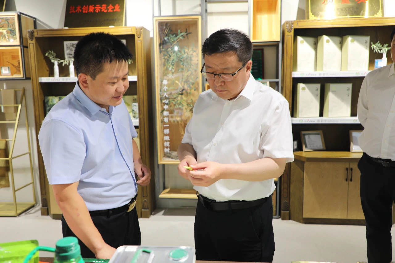在產(chǎn)品體驗(yàn)區(qū)李建科總經(jīng)理向劉市長(zhǎng)一行介紹了祥宇特級(jí)初榨橄欖油、橄欖茶、橄欖菜、