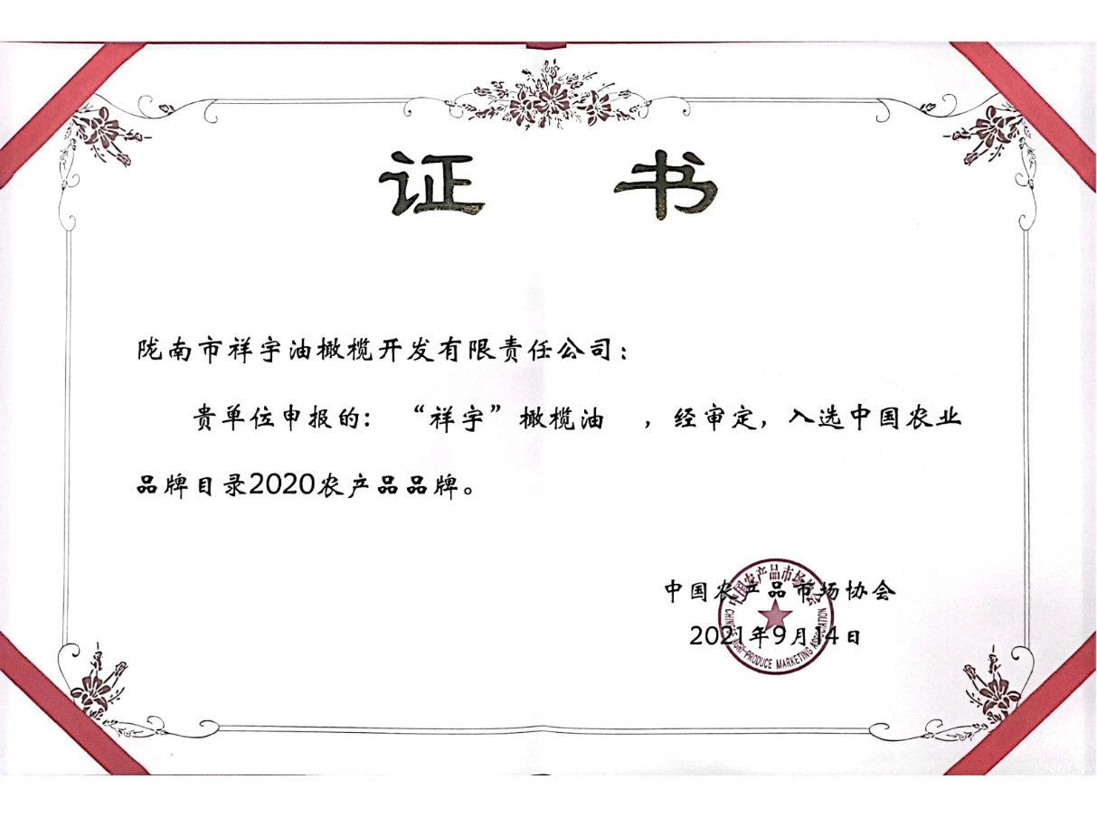 祥宇橄欖油入選中國農(nóng)業(yè)品牌目錄2020農(nóng)產(chǎn)品品牌!