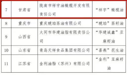 其中糧食類42個(gè),果品類13個(gè),蔬菜類19個(gè),茶葉類22個(gè),油料類11個(gè),“祥宇”橄欖油是甘肅省唯一一家入選的油類品牌農(nóng)產(chǎn)品。